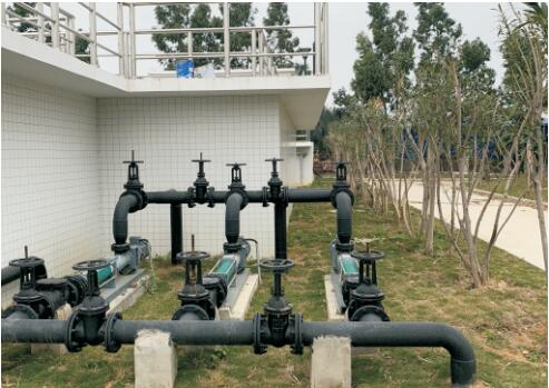 主要设计:格栅机→调节池→双曲面格栅→气浮池→水解酸化池→接触氧化池→二沉池 →接触消毒池